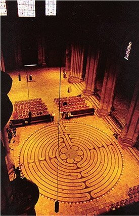 When I looked at Fludd’s diagram, however, what struck me was the comparison with the labyrinths of the medieval Gothic cathedrals, specifically the Chartres design, which attracts many thousands of pilgrims each year, who come there from all over the world to walk it. Chartres is an eleven-circuit and is based on the notion of connecting the mundane world with the divine, the outside world with the inner world. As it is placed within a church, one might not see it for what it is, but it is now well-established that labyrinths date back to pre-Christian times and were seen as devices through which one could experience the world of the divine – the Heavenly Jerusalem – directly. This was – and remains – little appreciated by the Church, whose premise is that God should and could only be experienced through the intercession of the Church – a priest. As a result, the Church has fought, for centuries, to control and eradicate labyrinths from its churches, in most cases, successfully.